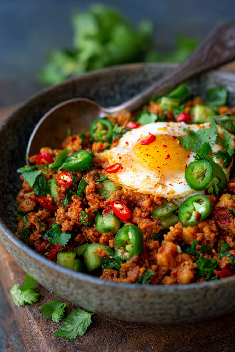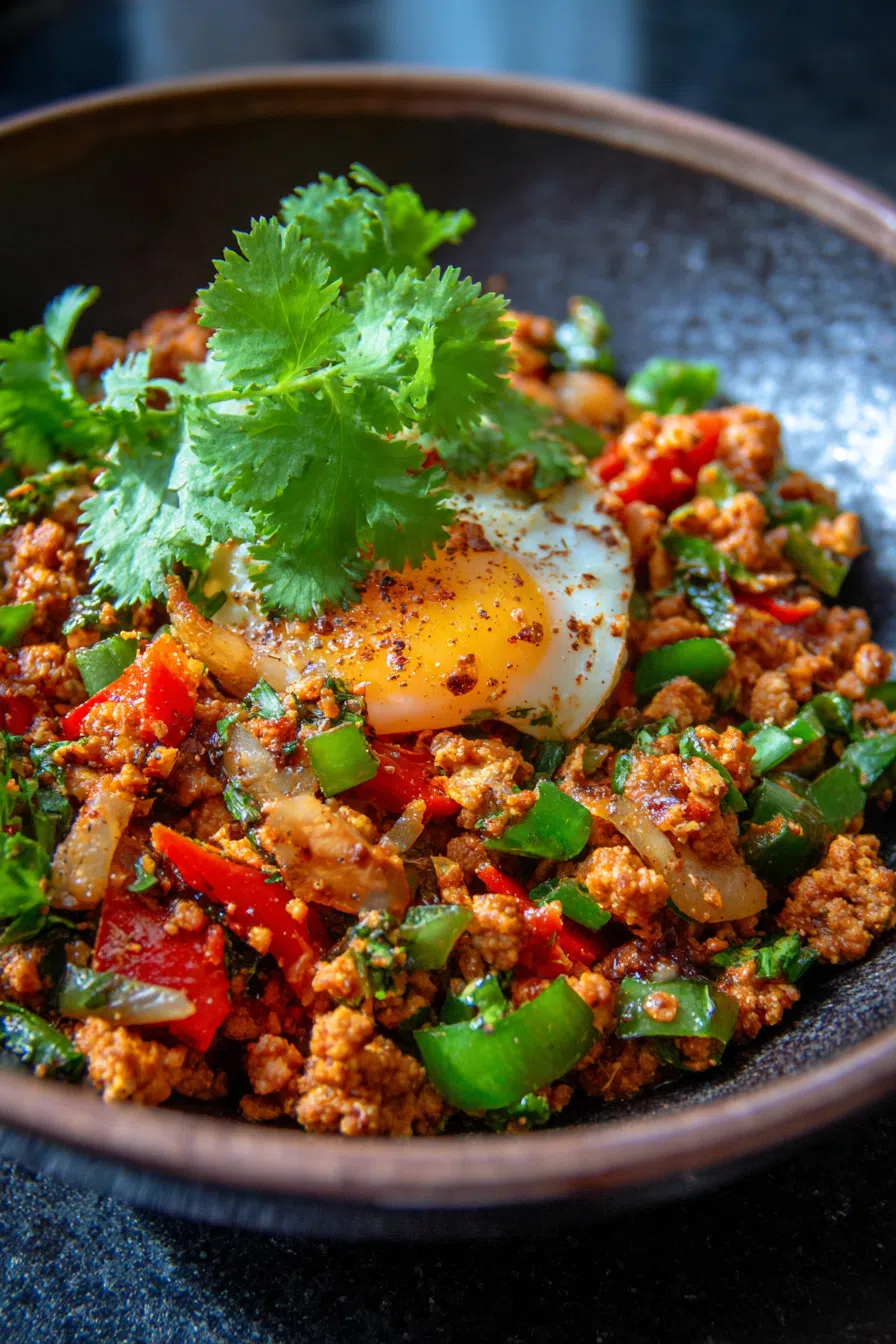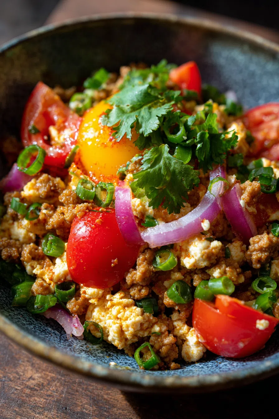 The star ingredients, lamb mince and fresh cilantro, add a rich flavor and freshness to the dish. The eggs provide a great source of protein to start your day.