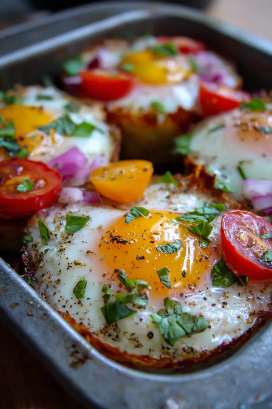 - Doneness cue: The eggs are done when they’re set and slightly golden brown on top.