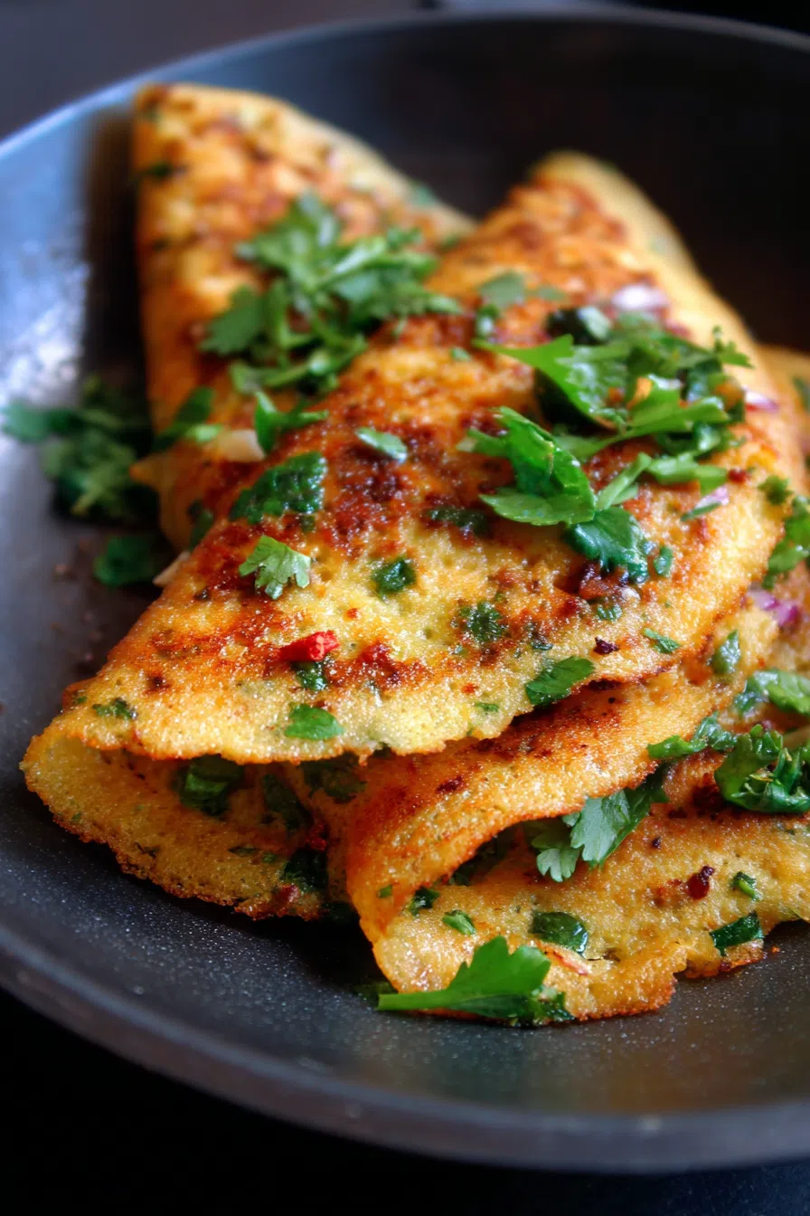 The aroma of sizzling spices and fresh herbs wafting from the kitchen is a surefire way to get my family’s attention, and that’s exactly what happens with my Savory Besan Chilla.
