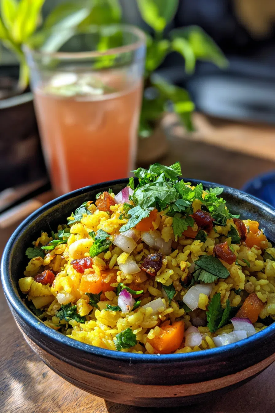 I still remember the first time I made this recipe for my family during a cozy winter morning in December 2018. We were all snuggled up by the fireplace, and I was experimenting with different flavors to add to our traditional poha recipe. That’s when I stumbled upon the magic of combining jaggery and coconut – it was love at first bite!