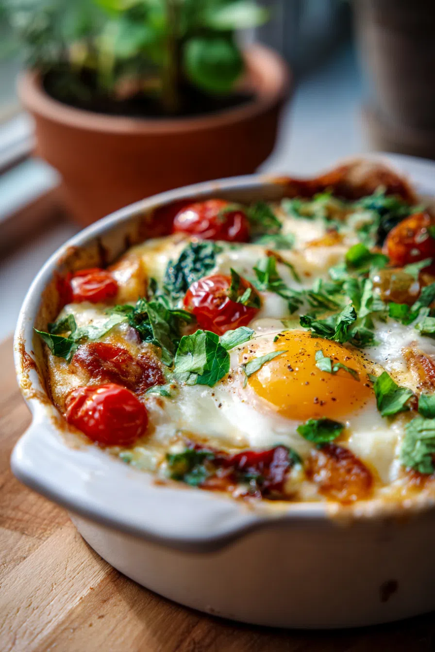 The star ingredients, fresh spinach and cherry tomatoes, bring a burst of freshness and flavor to this casserole, while the cheddar cheese adds a rich and creamy element.