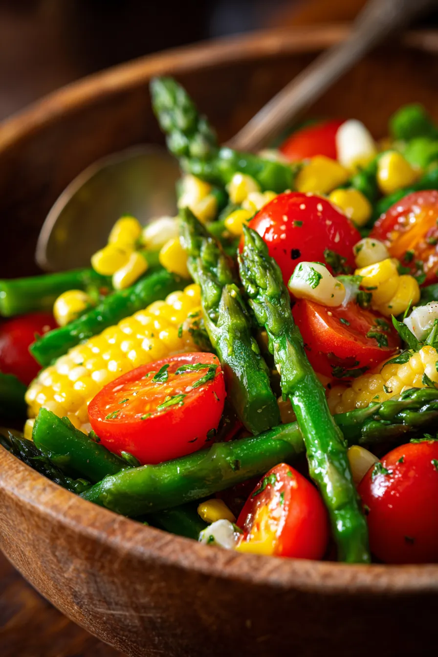 - Roasting for Depth: Roast asparagus and corn for deeper, caramelized flavor. Toss with olive oil, salt, pepper, then roast at 400°F (200°C) until tender-crisp.
